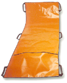 Camilla flexible de lona antidesgarro y plastificada, con 6 asas y sujeta-pies.